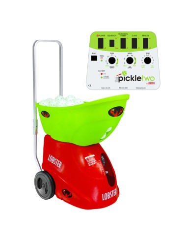 Mejorando nuestra máquina de pickleball original, el Pickle two de Lobster ofrece características más avanzadas, aumentando la complejidad del entrenamiento y haciendo que la máquina sea más fácil de usar.